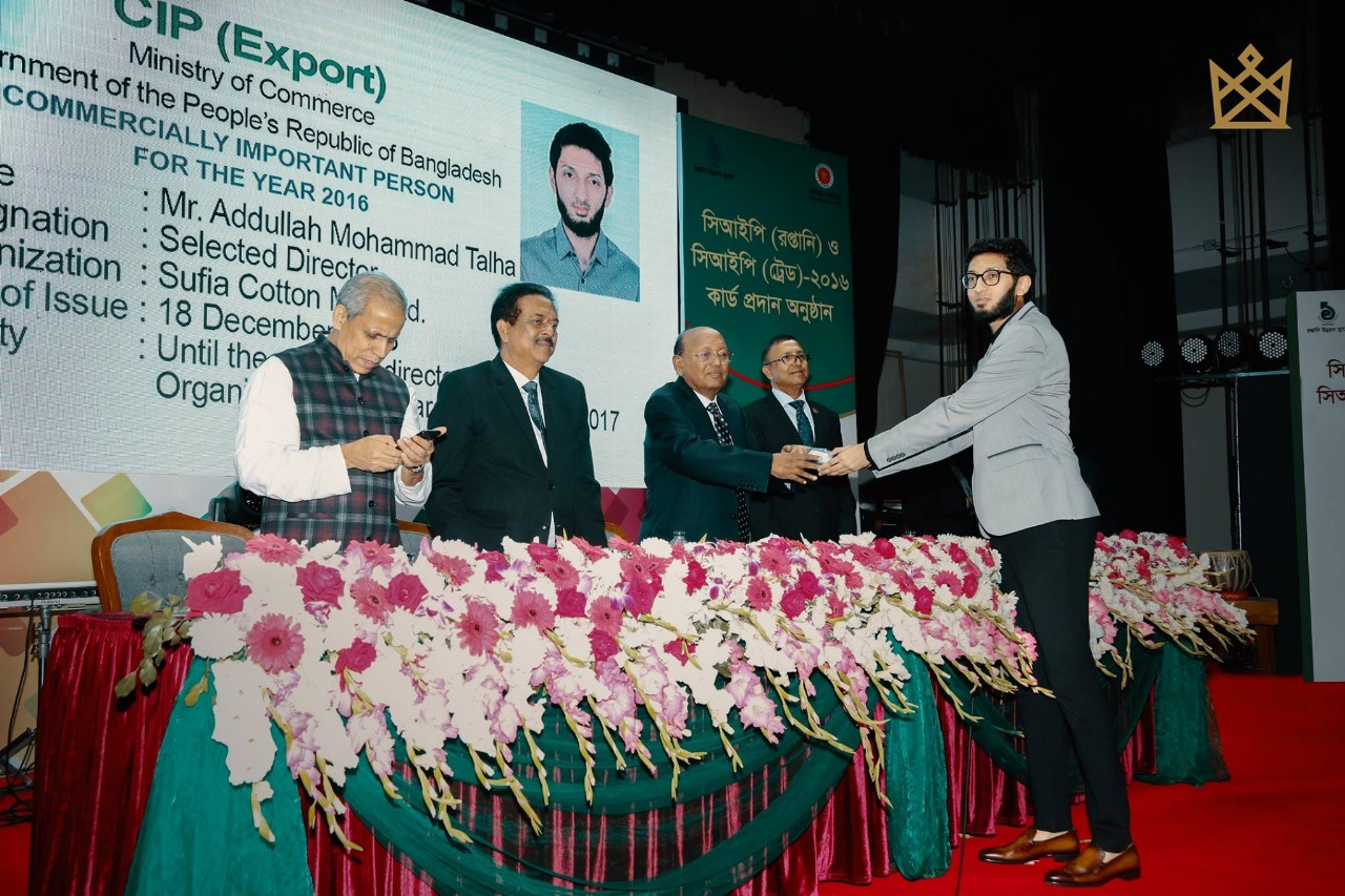 Abdullah Mohammad Talha has been awarded “National Export Trophy (Gold) 2015-2016” for being the highest exporter in Terry Towel Sector.